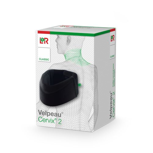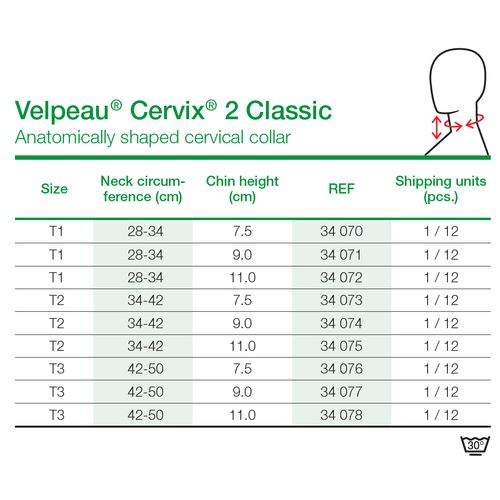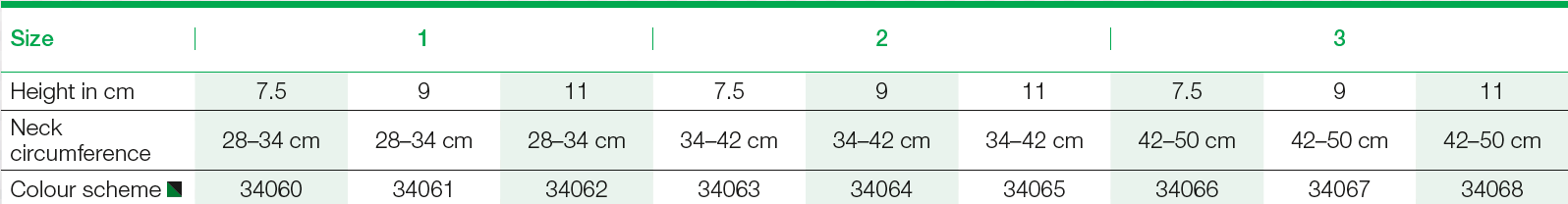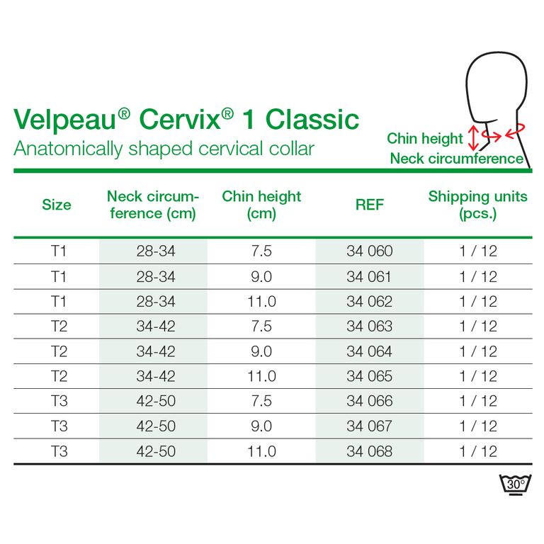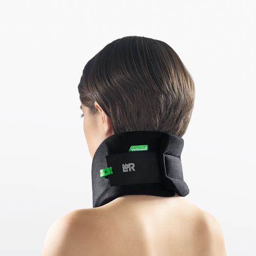 anatomical shape and the adjustment of the circumference by the hook and loop closure. The cervical collar is covered with a smooth
